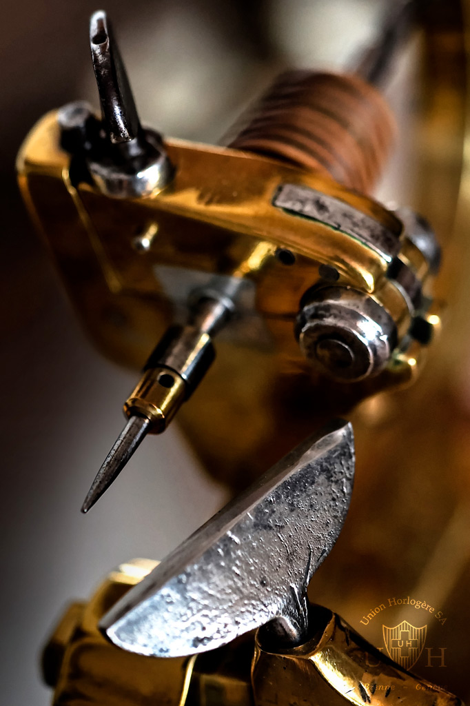 Components are purchased from selected suppliers in Switzerland. The movements are built according to the UNION HORLOGERE technical drawings in their own workshop in Geneva, where they are also assembled and checked.